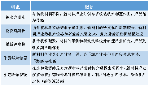 新材料產(chǎn)業(yè)屬于知識密集型、技術(shù)密集型和資金密集型產(chǎn)業(yè)。作為制造業(yè)的“底盤技術(shù)”之一,新材料產(chǎn)業(yè)具有技術(shù)含量高、投資周期長、革新速度快、下游聯(lián)動性強等特點,同時符合“綠色、節(jié)能、環(huán)保”的發(fā)展理念,已成為衡量國家綜合國力與科技發(fā)展水平的重要指標(biāo)。研發(fā)方面,新材料產(chǎn)品研發(fā)具有投入大、周期長、產(chǎn)業(yè)風(fēng)險放大等特點,最終實現(xiàn)商業(yè)化難度大,具有較高的壁壘與風(fēng)險。