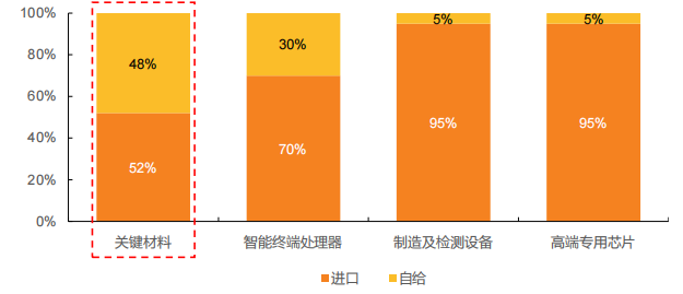 我國新材料產(chǎn)業(yè)起步較晚,與上述發(fā)達(dá)國家與地區(qū)相比,在產(chǎn)業(yè)規(guī)模、研發(fā)技術(shù)、生產(chǎn)設(shè)備等方面仍有較大差距,總體處于產(chǎn)業(yè)價值鏈的中低端水平,自給率有待提升。