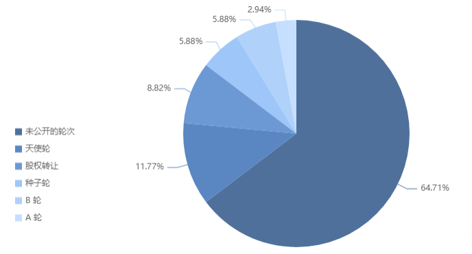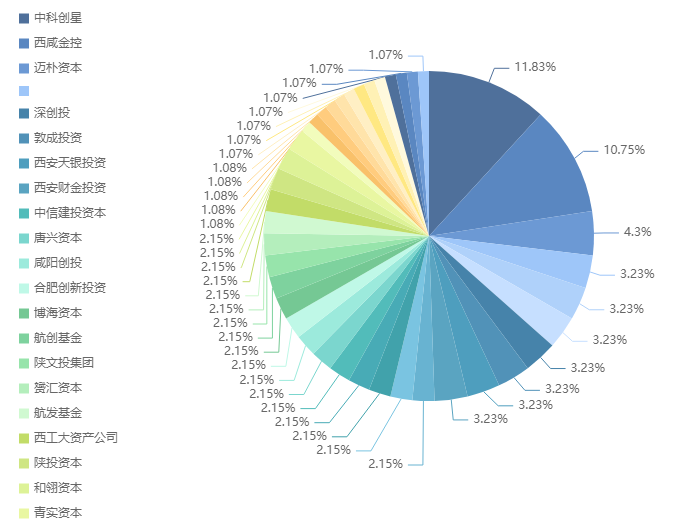 除未公開輪次外,占比最多的依次是天使輪、股權(quán)轉(zhuǎn)讓、種子輪、B輪和A輪??梢钥闯?,投資輪次以早期為主,顯示出陜西投資機構(gòu)的長期布局傾向。這種偏向中早期的投資策略一方面與前沿新材料產(chǎn)業(yè)布局有關(guān),另一方面也與近年來IPO上市渠道受阻有關(guān)。根據(jù)投資機構(gòu)訪談情況,多家投資機構(gòu)近年來在投資階段的選擇上都經(jīng)歷了從pre-IPO到中早期的轉(zhuǎn)變。