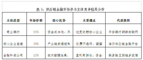 市場參與主體從傳統(tǒng)金融機(jī)構(gòu)單核驅(qū)動(dòng)轉(zhuǎn)向三元生態(tài)結(jié)構(gòu),各類主體呈現(xiàn)差異化優(yōu)劣勢: