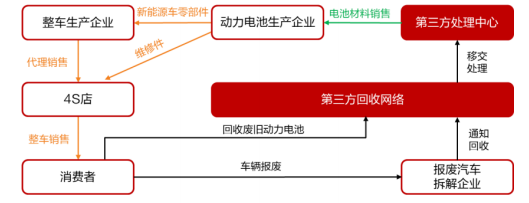 第三方回收模式是指由電池生產(chǎn)商或整車制造商委托專業(yè)的第三方企業(yè)來負(fù)責(zé)廢舊動力電池的回收,進(jìn)而實現(xiàn)“電池回收+再生利用”的商業(yè)模式。
