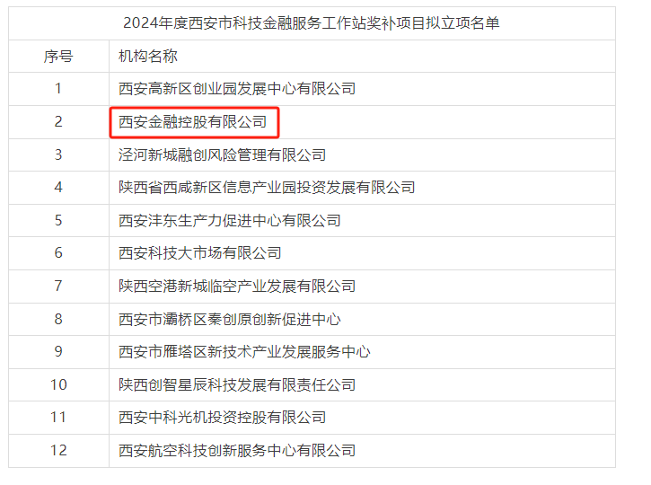 近日,西安市科技局發(fā)布2024年度西安市科技金融服務(wù)工作站獎(jiǎng)補(bǔ)立項(xiàng)項(xiàng)目公示,西安金控公司運(yùn)營的科技金融服務(wù)工作站(浐灞國際港)再度獲評(píng)年度考核“優(yōu)秀”等級(jí),以第二名的成績,成為全市12個(gè)獲得立項(xiàng)支持的工作站之一。